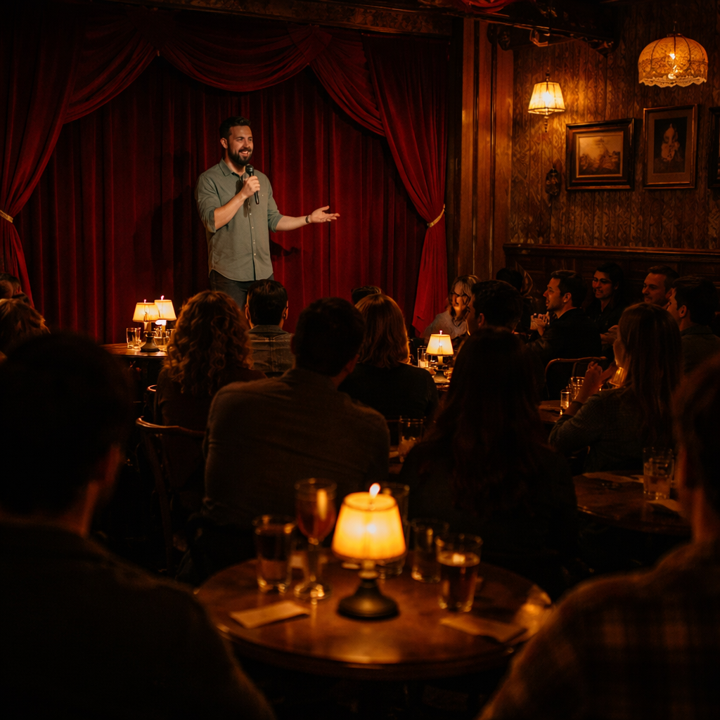 🎙️✨ Small room, speakeasy-style vibe, and that intimate “everyone’s in on it” energy. This is a better save than a giant club night when you want actual atmosphere and a crowd that came for something good. Some comedy nights feel disposable. This one feels like a real room with a real mood — the kind of night that leaves a better memory than a louder plan. 👉 Save this for a cozy North Beach night when you want laughs without the tourist circus. ⚡ Infa · happening now 👥 Recommended by real people 🎨 AI illustration image (for vibe)